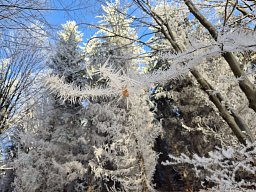 Slunce a krásná námraza. Cestou dál směr Jitravský vrch to dost klouzalo.