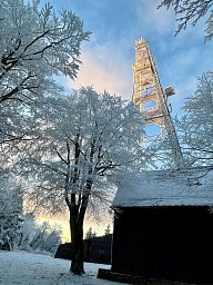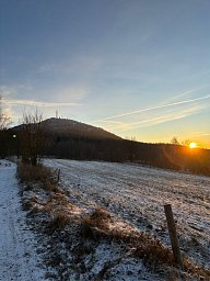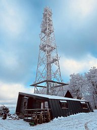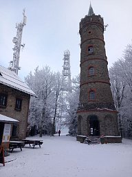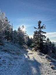 Cesta peklo, místy zmrzlý sníh a led. Mlha, nebylo nikam vidět. Dost foukali, cca kolem 0.
