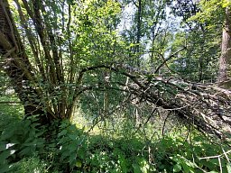 Takový polozarostlý les, ale ještě to šlo. Zbytky hrádku, bez výhledů.